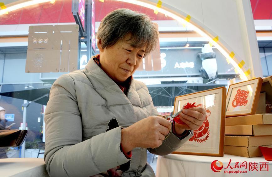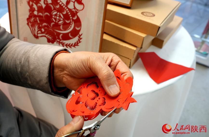 非遗传承人展示剪纸艺术。人民网记者 贾凯璐摄