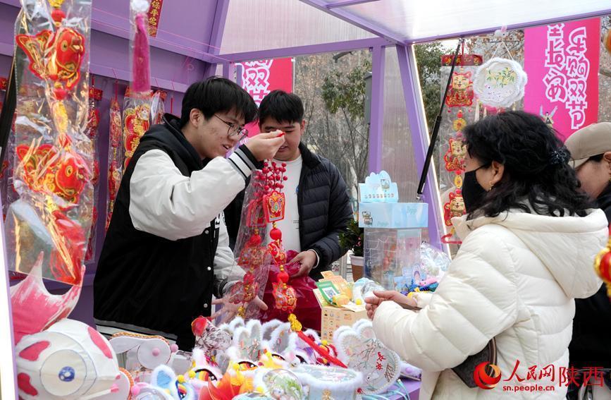 市民在摊位前采购春节饰品。人民网记者 贾凯璐