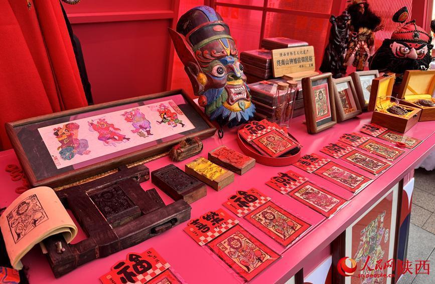 “以往的木版年画比较大,不好携带,这次我们改良了尺寸,换成了这种比较精巧的样式,大家可以放在手机里。”木版年画展位前,陕西省第三批非物质文化遗产项目《终南山钟馗信仰民俗》代表性传承人王骥正在向大家介绍自己的“新产品”。