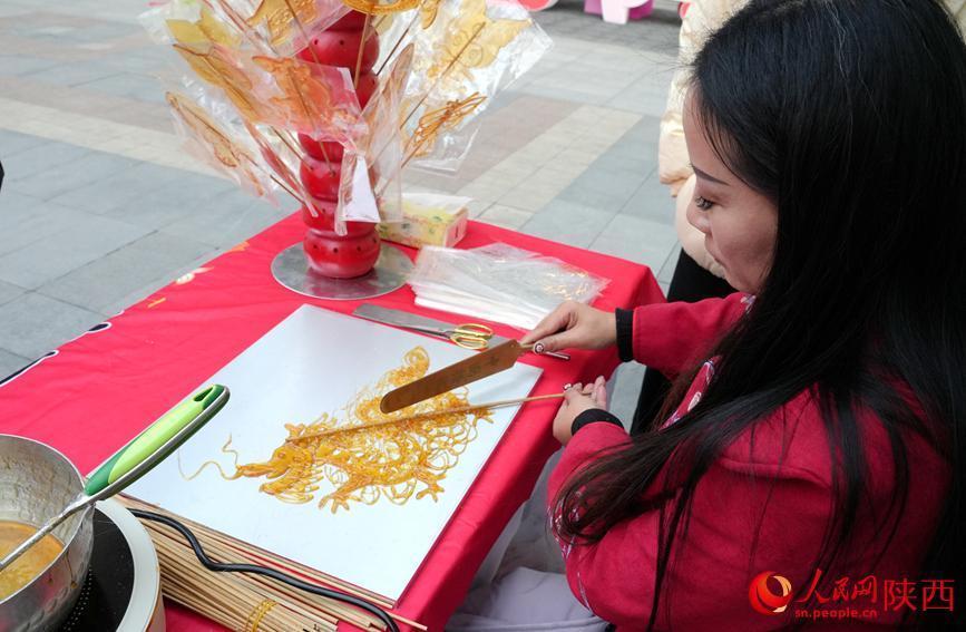 非遗传承人现场制作糖画。人民网记者 贾凯璐摄