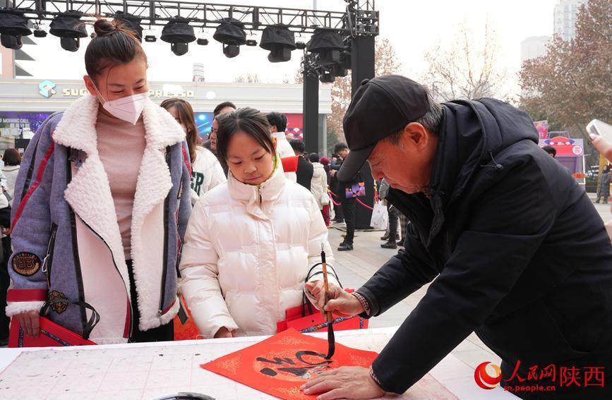 年货节现场送春联活动吸引市民围观。人民网记者 贾凯璐摄